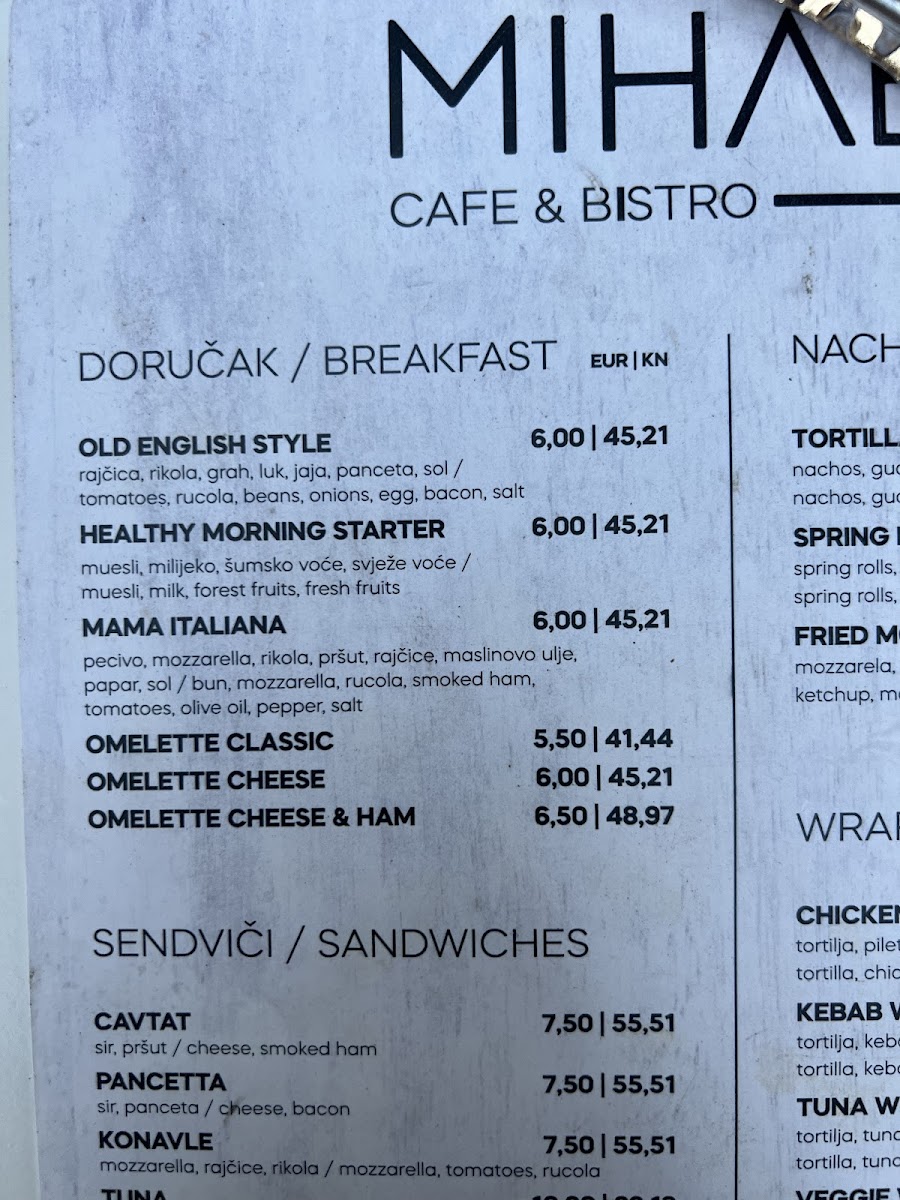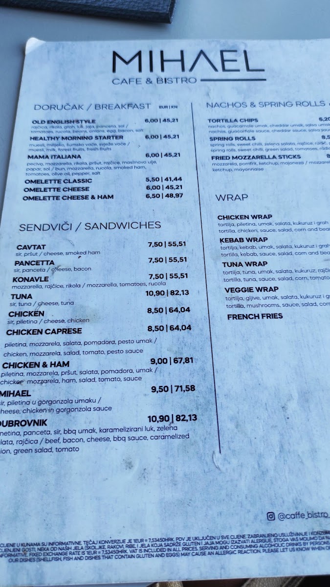 Nestled in the heart of Cavtat, Croatia, Caffe Bar Mihael offers a vibrant menu that caters to all palates. Whether you're craving a delightful breakfast or a satisfying dinner, this charming eatery has something special for you.